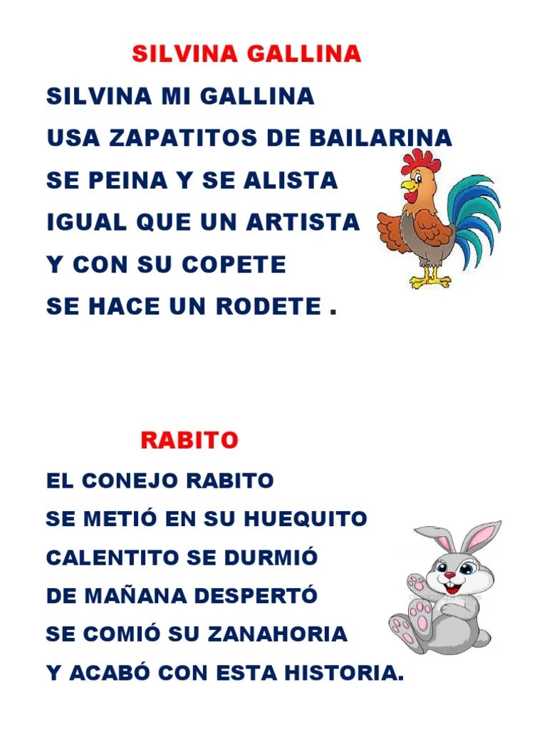 Rimas Con Gallina Para Niños - Poesias Y Adivinanzas De Gallinas Artofit. Estas son algunas palabras que riman con "gallina": Angina, bocina, cocina, doctrina, harina, lavandina, mina, oficina, ruina, vecina (rimas . La rima de la gallina ayuda a centrar a los niños inquietos, .
